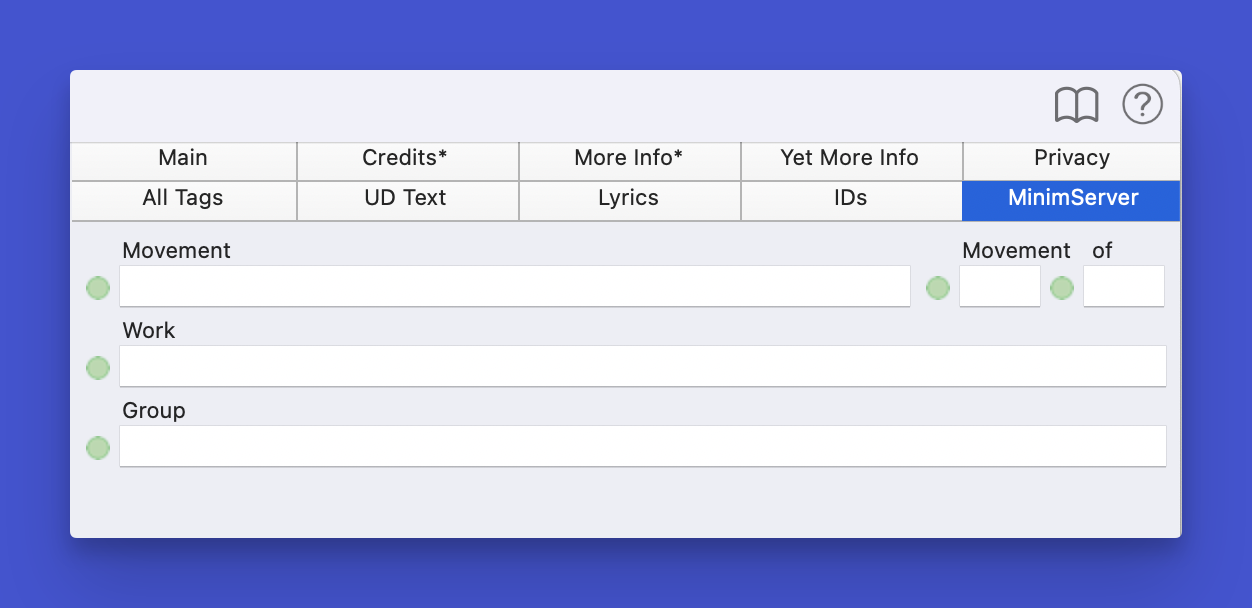 I don't know which of the Work and Movement tags (whatever they're called) you currently have in use in your files. If you're just starting to populate the tags, it makes it is easier as your don't have to worry about carrying over pre-MinimServer values. If you're tagging classical files you'll probably also need a Group tag in MinimServer which was introduced the same time as Work. This can be mapped to the standard Grouping tag or can be something else entirely. I'd make a new field as MinimServer's interpretation of Group differs from a standard Grouping tag.
